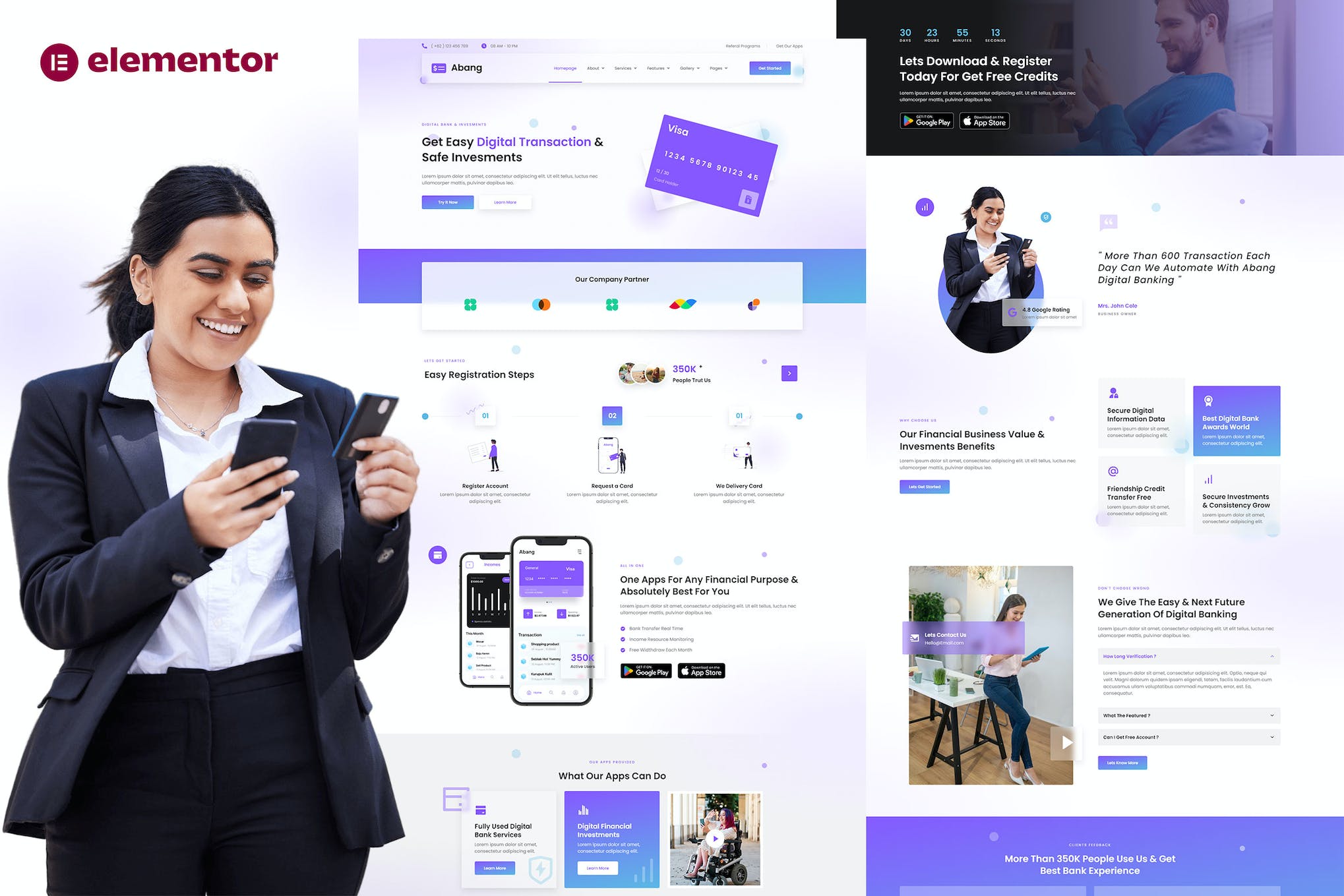 Introducing Abang – Digital Bank & Financial Investment Elementor Template Kit, a comprehensive collection of layouts designed for use with Elementor Pro Version. This Template Kit offers clean and professional designs that are compatible with most themes and optimized for use with the free Hello Elementor theme. With 21 import templates included, this kit provides ready-to-use options for various sections like the homepage, about us, legal business, services, blog, and more. Please note that some templates and features require the Elementor Pro upgrade. For step-by-step installation instructions, please refer to the detailed guide provided. Please note that the demo images used in this Template Kit are from Envato Elements and require licensing or substitution with your own images.