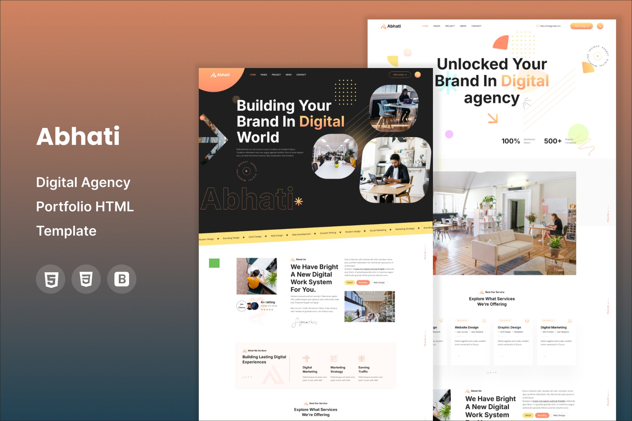 Experience the ultimate versatility and efficacy with Abhati, the multipurpose Digital Services Agency HTML Template. Tailored for companies specializing in web design, development, internet services, and digital marketing, Abhati provides a comprehensive platform for all your internet marketing needs. With a sleek and modern design, seamless functionality, and robust features, Abhati is the perfect solution for businesses looking to establish a strong online presence. Elevate your agency’s digital capabilities with Abhati and unlock endless possibilities for growth and success.