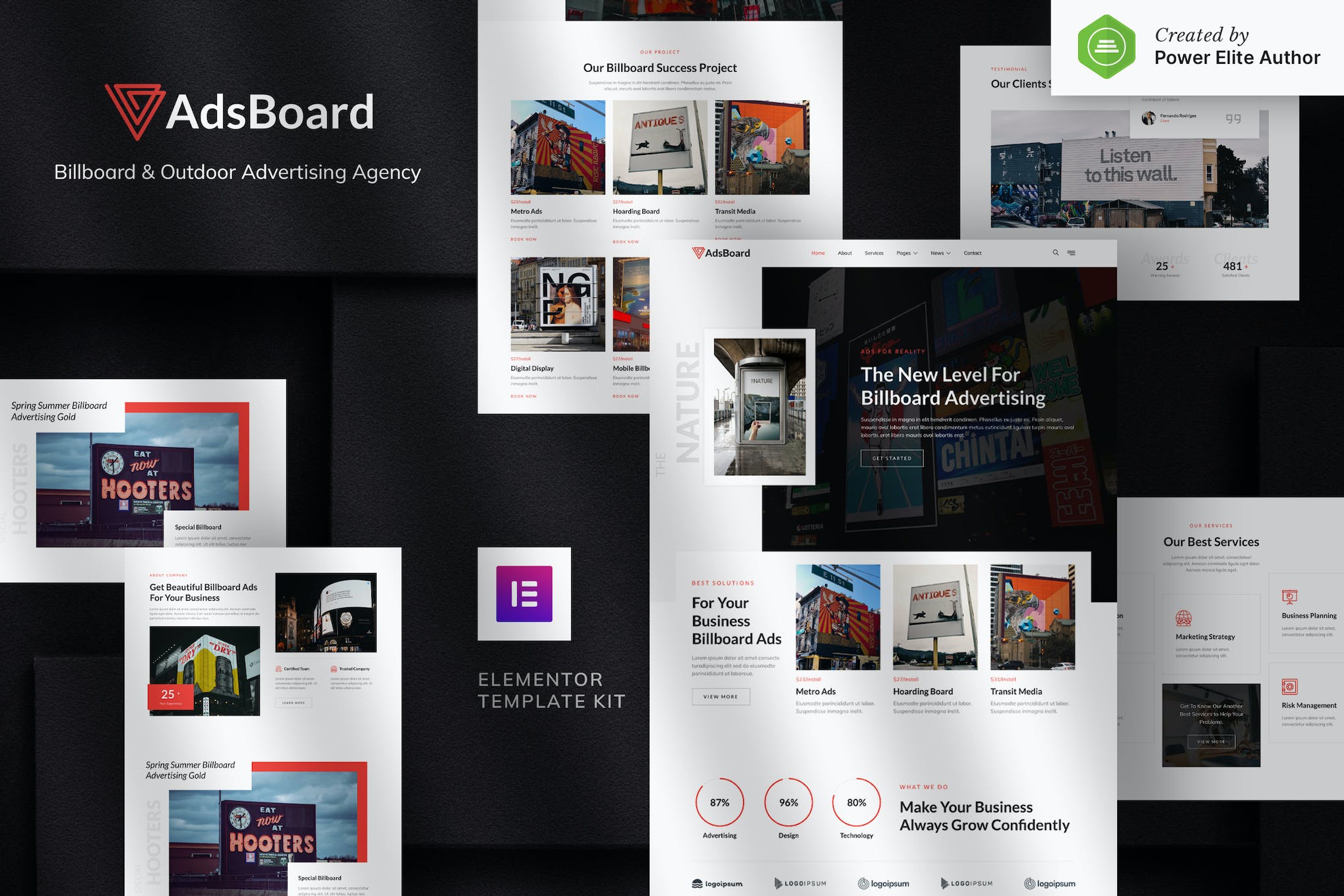Introducing AdsBoard, a modern and clean Elementor Template Kit designed for Billboard & Outdoor Advertising Agencies, Mall Advertising, Media Advertising, and similar businesses. With its professional design, 100% responsive layout, and retina-ready display, creating a professional website has never been easier. This template kit includes 16+ stunning templates that are fully customizable and compatible with popular browsers. No coding is required, thanks to Elementor. Transform your website effortlessly with AdsBoard.