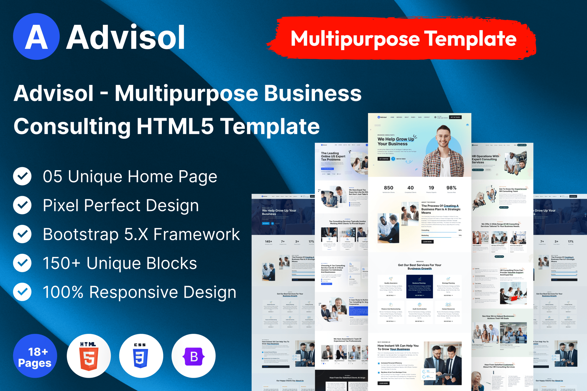 Introducing Advisol, a sleek and modern Business Consulting HTML Template that is specifically crafted for various industries like Business, Financial, Consulting, and more. With its 10+ Prebuild Home Pages and a range of inner pages, such as service, projects, team, and testimonials pages, Advisol provides a comprehensive platform to showcase services and portfolios effectively. This template is fully responsive, ensuring seamless performance across all devices. Moreover, Advisol is well-documented, clean-coded, and offers features like Google font integration, quick support, and easy customization, making it a versatile choice for any business looking to establish a strong online presence.