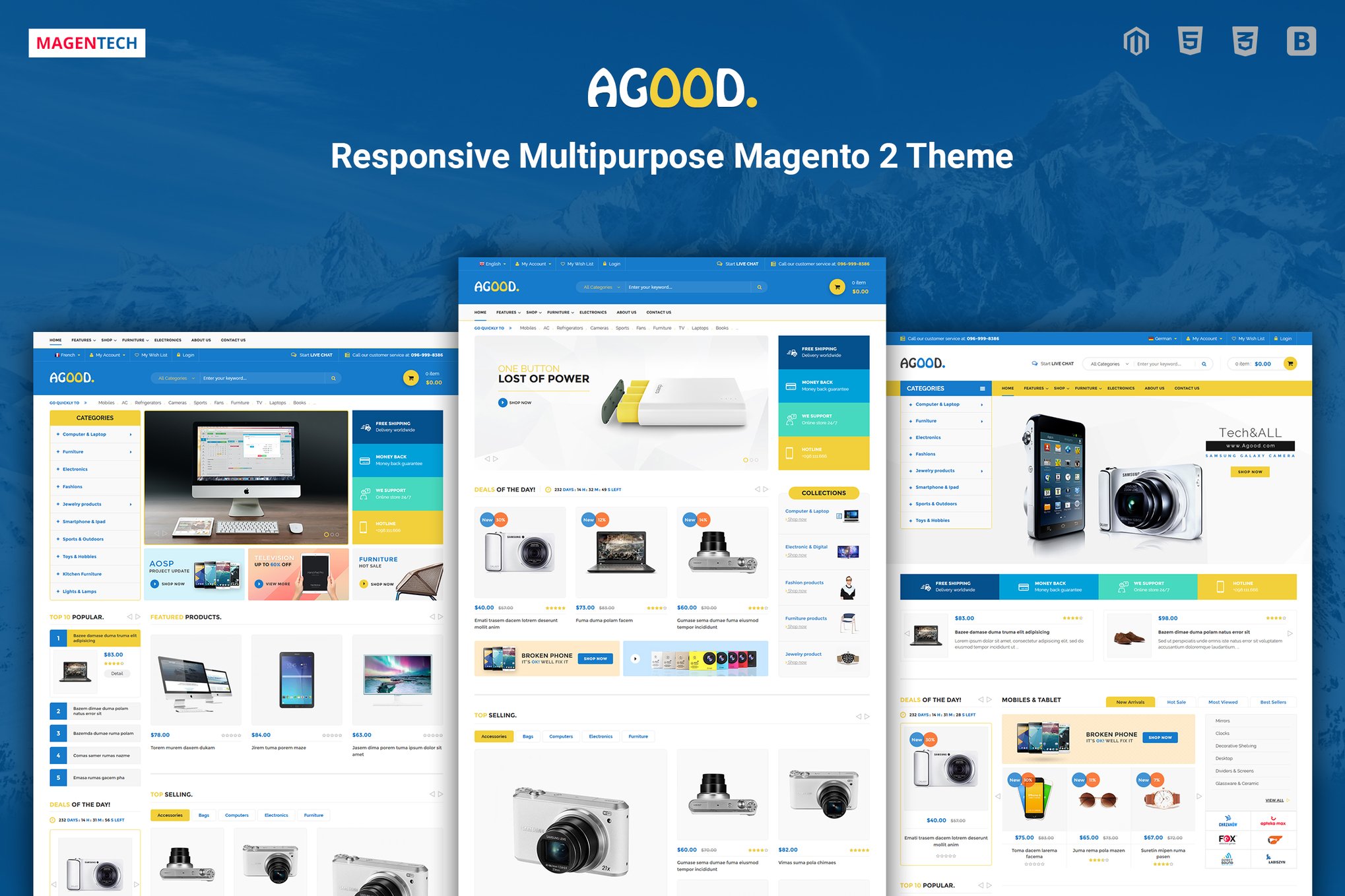 Download Agood – the ultimate premium Magento Theme for all your eCommerce needs. Whether you specialize in digital products, mobile gadgets, trendy fashion, or chic accessories, Agood caters to every niche with its versatile design. Experience a professional website transformation with clean layouts, courtesy of advanced features like Responsive design, 3 dynamic homepage layouts, and 3 header styles. With integrated premium Magento 2 extensions worth over $200, including Mega Menu and Image Slider, Agood elevates your online store to new heights. Explore a world of possibilities with custom layouts, Ajax functionalities, multi-language support, and more. Elevate your eCommerce game with Agood!