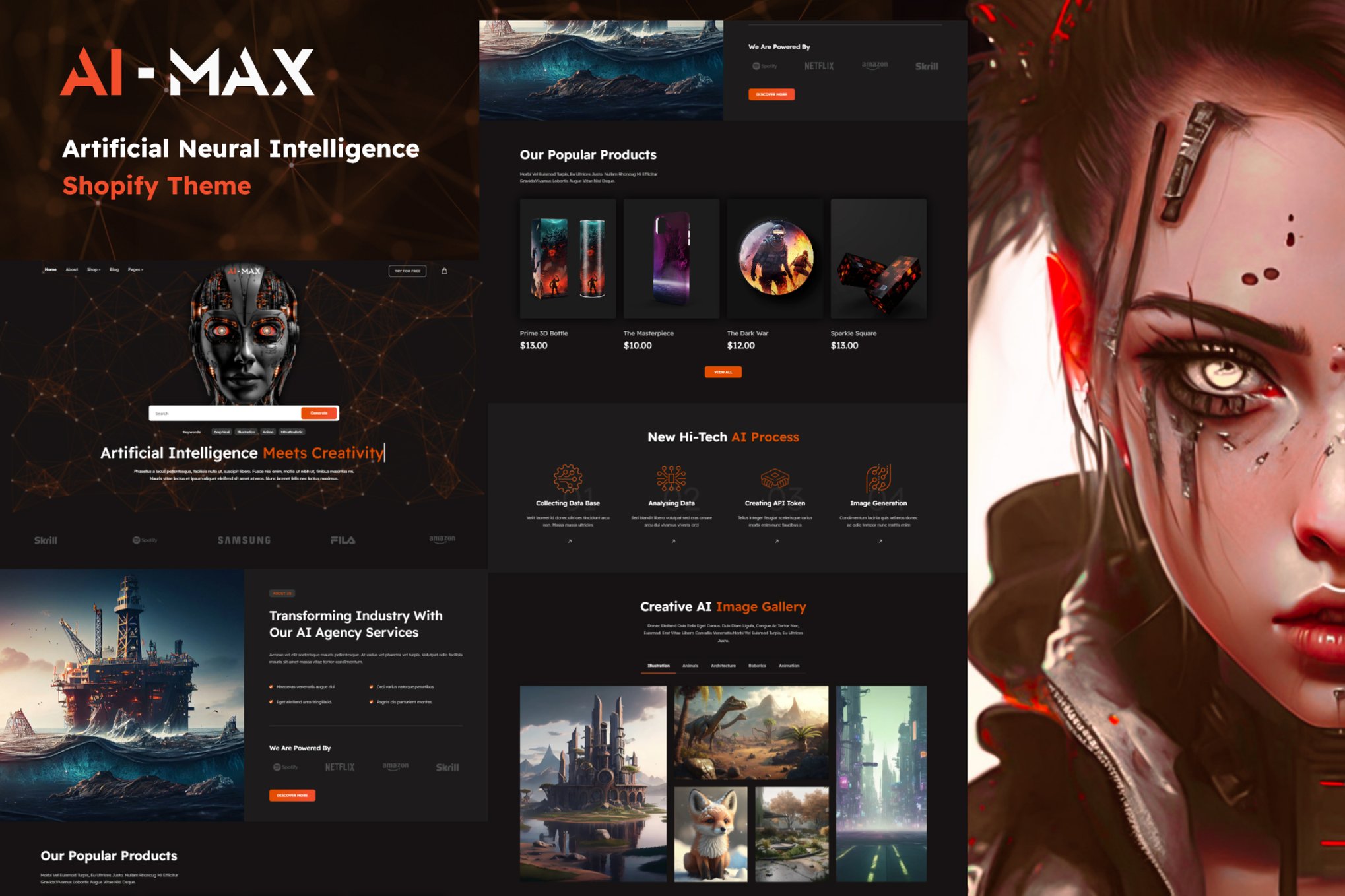 Key features of AI Max include a responsive design ensuring seamless display across all devices, a slick slider for a visually appealing showcase of content, product featured sliders, sale labels, carousels, product comparison, sorting options, grid & list modes, customer reviews, and accounts. It also offers custom widgets for information, about us, and contact pages, as well as drag & drop sections for easy customization.