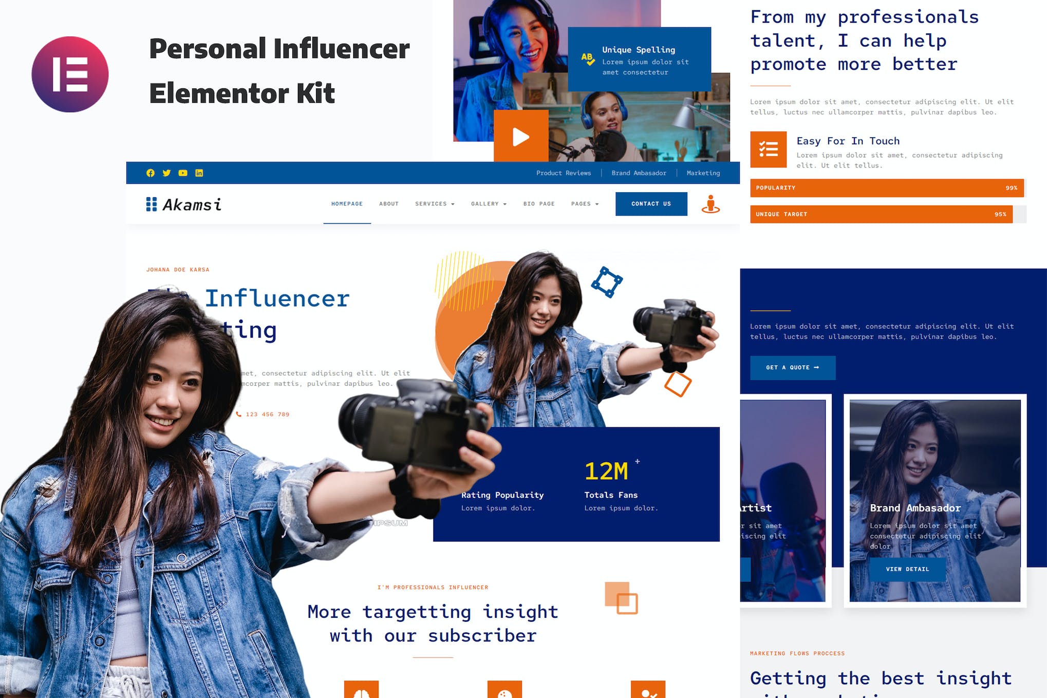 Introducing Akamsi – Personal Influencer Elementor Template Kit, a collection of professionally designed layouts for the Elementor page builder WordPress plugin. Designed with a clean and sleek aesthetic, this kit is compatible with most themes and optimized for use with the free Hello Elementor theme. With 18 import templates included, you’ll have everything you need to create a stunning website. Please note that Elementor Pro upgrade is required for some templates and features. Get started today and elevate your online presence with Akamsi.