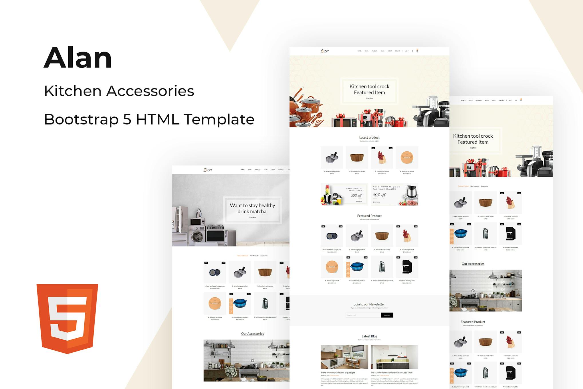 Enhance your kitchen accessories store’s online presence with Alan – Kitchen Accessories Bootstrap 5 HTML Template. This feature-rich template offers 29+ HTML pages, including 2 homepage layouts, 7 shop pages, and 6 blog pages. Designed with Bootstrap 5, it boasts modern elements such as Icon Fonts, CSS3, and Parallax Effects to captivate your customers. With a focus on user satisfaction, the template’s sleek design aims to attract potential customers, leading to increased engagement and business success. Benefit from easy customization, solid SEO, and free lifetime updates, alongside dedicated after-sales support for a seamless website management experience.