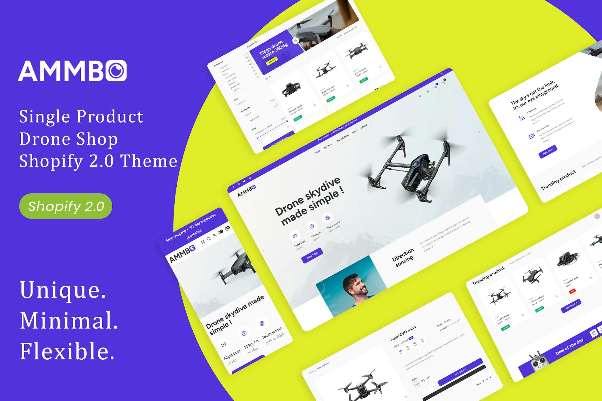Introducing Ammbo – Single Product Drone Shopify 2.0 Theme, a stunning and modern Shopify theme designed for eCommerce websites. Stand out from the competition with this elegant and customizable theme that offers advanced features such as ajax cart, multiple product templates, predictive ajax search, and more. Whether you sell drones, beauty products, electronics, or any other type of gadget, Ammbo is the perfect choice. With its user-friendly admin panel and responsive design, creating and managing your online store has never been easier. Get Ammbo now and take your eCommerce business to new heights.