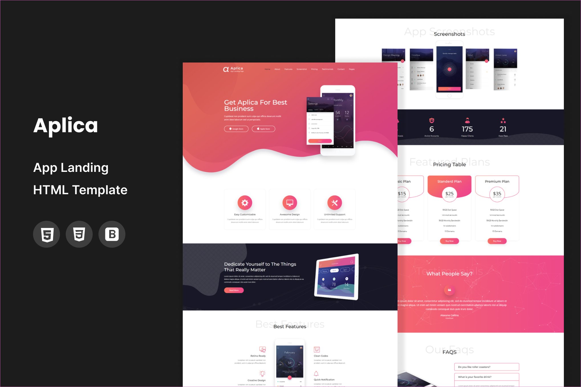 Introducing Aplica, a sleek and modern Responsive HTML5/CSS3 Template powered by Bootstrap. This user-friendly template is compatible with a wide range of devices, ensuring seamless navigation and stunning visuals on desktops, laptops, tablets, and mobile phones. With a clean and professional design, Aplica is perfect for a variety of purposes, including marketing companies, businesses, agencies, blogs, and personal portfolios. Its smooth transitions and effects enhance the overall appeal of your website, making it ideal for showcasing apps, products, or services. Whether you need a landing page, a showcase, or an online store, Aplica offers a versatile solution for your online presence.