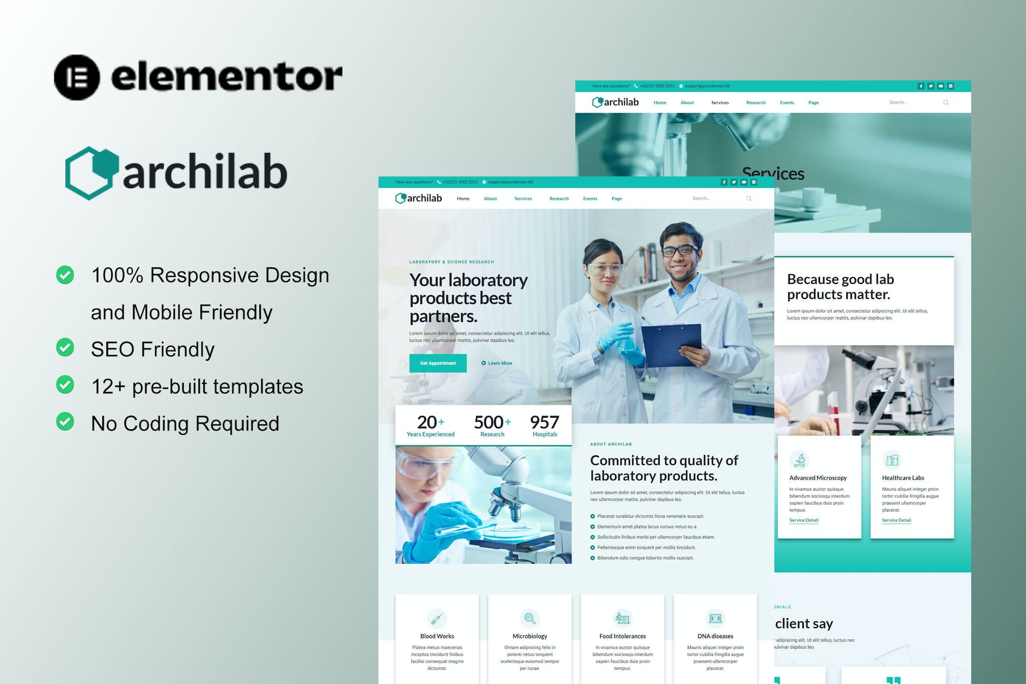 Introducing ArchiLab, a modern and professional Elementor Pro Template Kit designed specifically for research and laboratory websites. With its clean and simple layout, this template is perfect for any business related to research and laboratory services. Whether you’re looking to build a medical website, research website, or pharmaceutical website, ArchiLab has got you covered. And the best part? No coding required! Just drag and drop to customize your website with ease. Download ArchiLab today and take your research and laboratory business to the next level.
