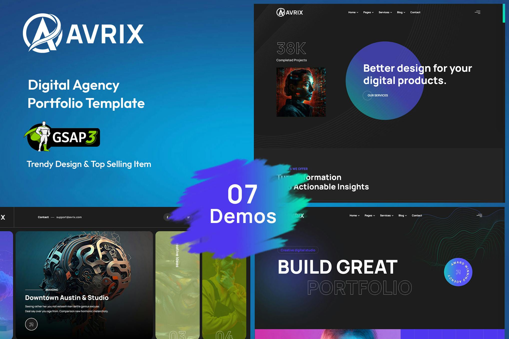 The Avrix Digital Agency Portfolio Template is a sleek and modern website design perfect for showcasing the work and services of digital agencies. With a clean layout and stylish design elements, this template is sure to impress visitors and potential clients. The template offers a user-friendly interface and easy navigation, making it simple to customize and manage. Its responsive design ensures a seamless experience across different devices. Overall, the Avrix template is a professional and eye-catching choice for any digital agency looking to establish a strong online presence.