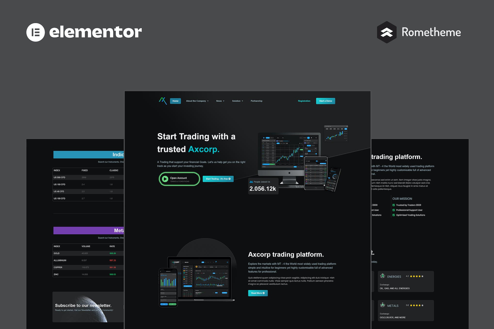 Introducing Axcorp, an exceptional Elementor Full Site Kit that allows you to effortlessly create a professional website for your fintech, crypto, or ICO venture. Designed to optimize the free Hello Elementor theme, this kit can also be used with other themes compatible with the Elementor page builder. With its no-code customization, you can easily personalize fonts, colors, and other elements, while the drag and drop builder simplifies the process of adding visuals and content. Please note that this is not a WordPress theme but a Template Kit offering extensive page content for the Elementor page builder. Upgrade to Elementor Pro and unlock even more templates and features. Easily import the kit through Elementor, follow the provided instructions, and enjoy its fast-loading, modern design.