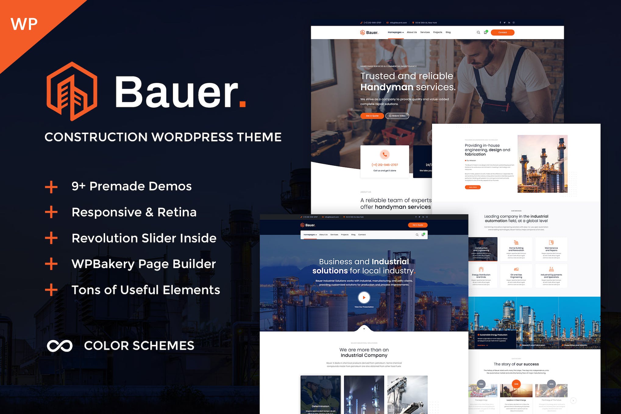 Introducing Bauer, an ultra-responsive and retina-ready WordPress theme designed specifically for construction, industrial, renovation, architecture, factory, and handyman service websites. Packed with extensive customization options and settings, Bauer allows you to effortlessly personalize every aspect of your website. With 9+ unique demos, one-click demo installation, and a drag-and-drop page builder, creating your dream website is a breeze. Enjoy features like the powerful admin panel, WooCommerce compatibility, multilingual support, and the inclusion of premium plugins like WPBakery Page Builder and Revolution Slider. Start building your professional website with Bauer today.