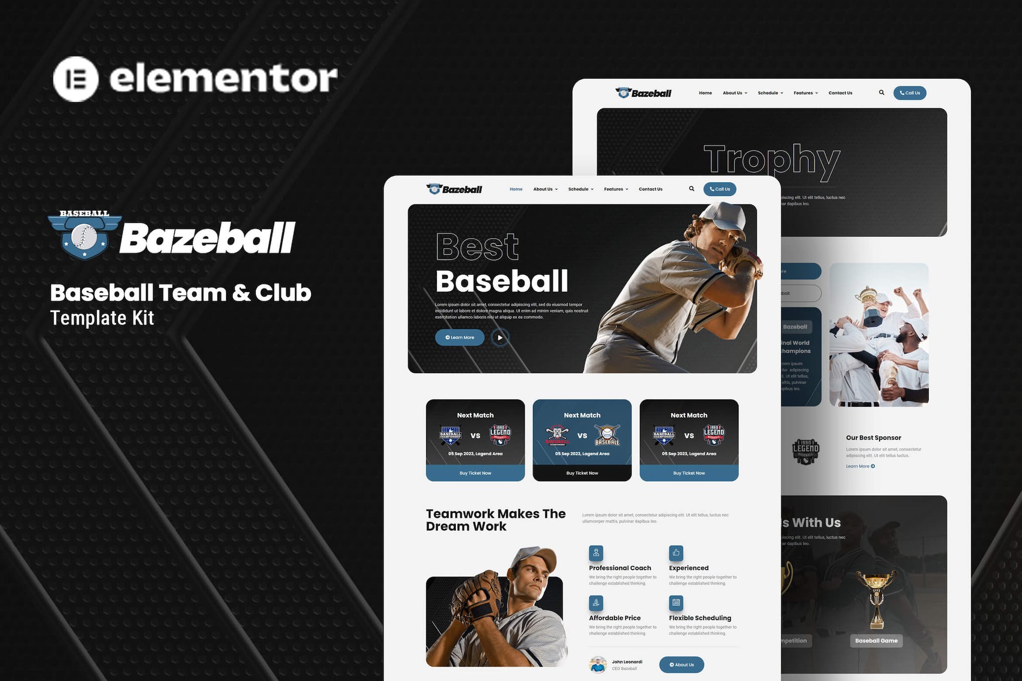 Introducing Bazeball, a professional and versatile Elementor Template Kit designed specifically for sports teams, clubs, blogs, and gaming clans. With its no-code customization feature, you can effortlessly create stunning websites using the drag and drop visual builder. Enjoy the convenience of customizing fonts and colors in one place or fine-tuning individual elements. This fast-loading template is compatible with most Elementor themes, making it a perfect choice for your website needs. Get started today with Bazeball and showcase your team’s achievements with style and ease.