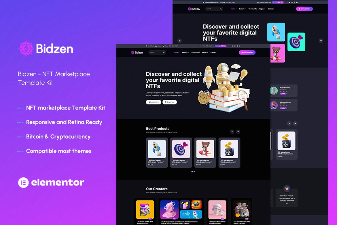 Introducing Bidzen, a cutting-edge NFT marketplace React Template designed for traders and creators alike. Easily connect collectors and artists to trade non-fungible tokens seamlessly. With its developer-friendly code and personalized options, Bidzen allows you to create a visually stunning website that is easy to navigate across different screen sizes. Benefit from features like clean design, unlimited color options, and a user-friendly interface to elevate your NFT trading experience. Unleash the potential of the NFT market with Bidzen.