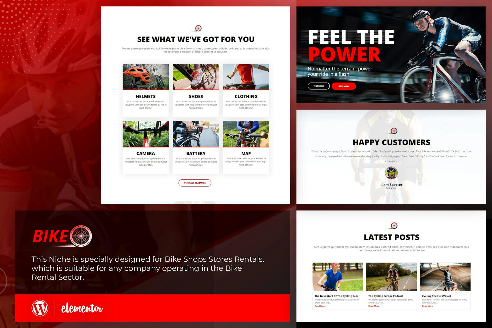 Enhance your bike rental website with Biko Template Kit, tailored for bike shops, stores, and rentals. Built on Elementor, it offers a user-friendly experience for beginners and advanced developers alike. With a sleek design and versatile features, Biko allows you to showcase your services effortlessly. Easily customizable and visually appealing, this kit brings your bike rental business to life. Elevate your online presence and attract more customers with Biko Template Kit for a seamless website development experience.