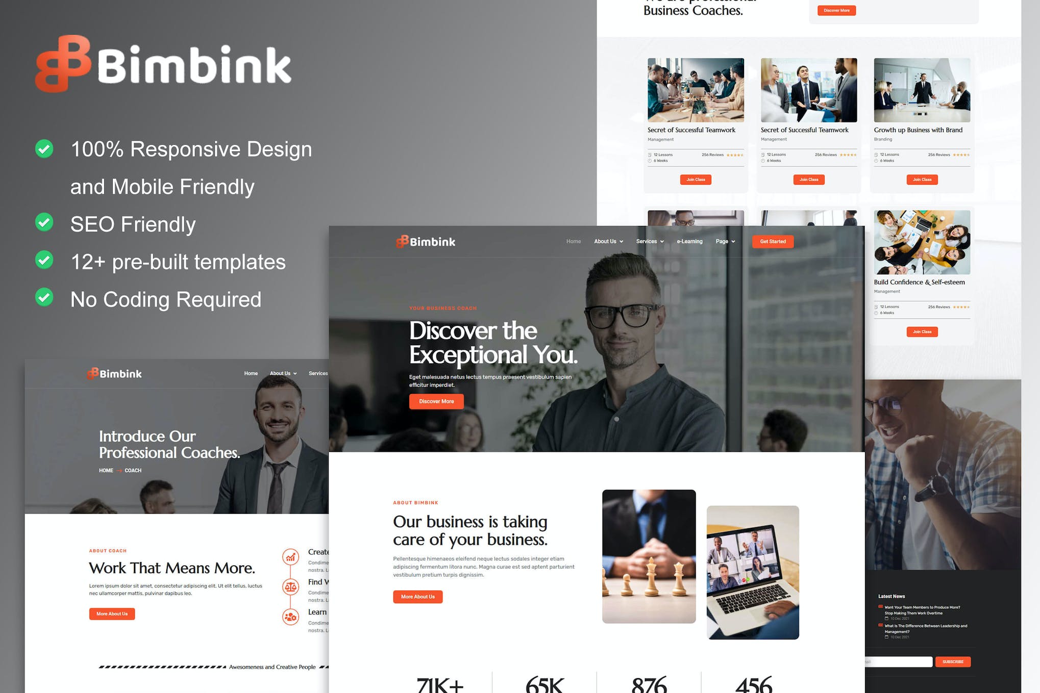 Introducing Bimbink, a professional and modern elementor template kit designed specifically for business coaches and consultants. Whether you’re a speaker, mentor, trainer, or expert, Bimbink has you covered with its 12 pre-built templates and easy customization options. Built with Elementor Pro and featuring a 100% responsive and mobile-friendly design, this template kit is perfect for creating your business coaching or training website. Take your coaching business to the next level with Bimbink.