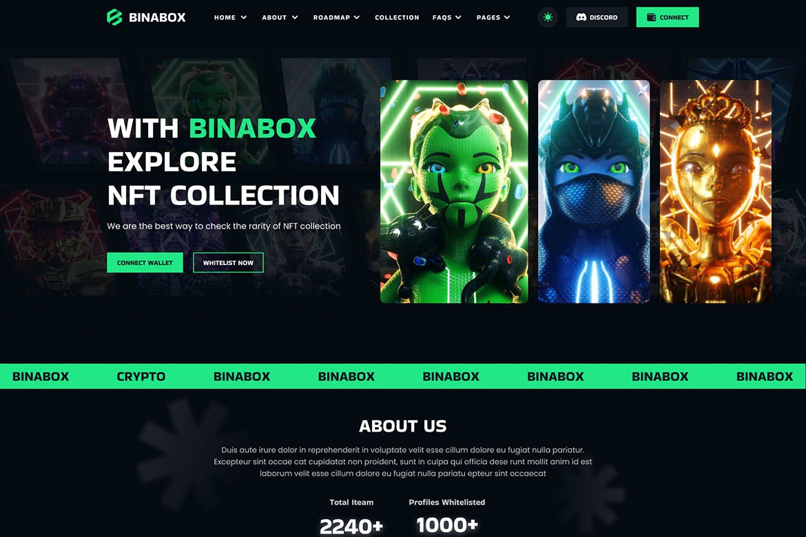 Introducing Binabox, a premium HTML template designed specifically for NFT portfolios. This fully-coded template is perfect for showcasing digital assets such as crypto collectibles, digital art, and more. With SEO optimization, responsive design, and a plethora of customization options, Binabox offers a clean and unique look to your website. Enjoy features like the Ajax Contact Form, Parallax Effect, and unlimited color choices for a truly personalized touch to your online presence. Elevate your NFT portfolio with Binabox today.