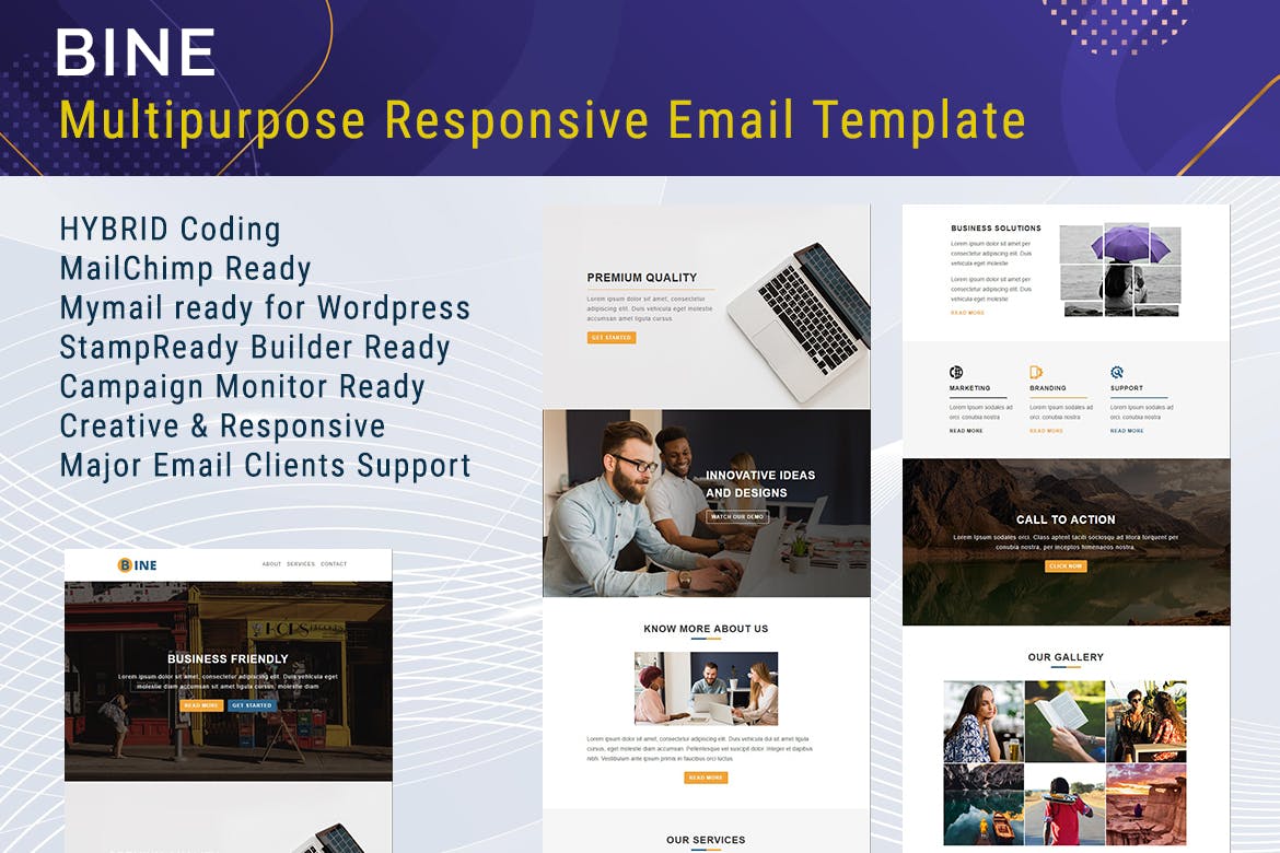 The Bine multipurpose responsive email template is a versatile solution for creating visually appealing and engaging email campaigns. With its responsive design, the template ensures your emails look great on any device, reaching a wider audience. Featuring a clean and modern layout, Bine offers a professional look that can be easily customized to suit your brand. Packed with useful features and compatible with popular email clients, this template simplifies the process of creating impactful emails for your marketing efforts. Whether you’re promoting products, sharing updates, or sending newsletters, Bine provides a reliable and stylish platform to captivate your audience.