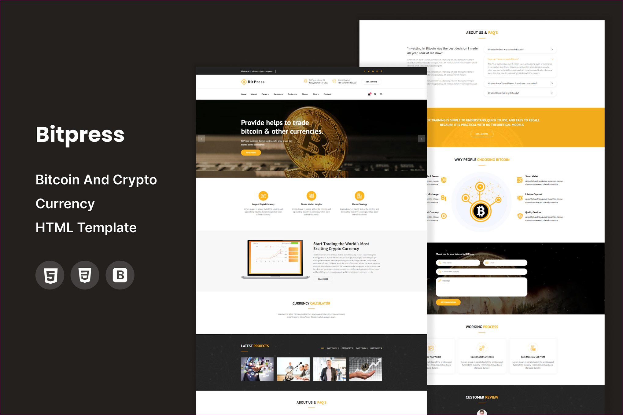 Bitpress is the ultimate HTML template designed for websites in the cryptocurrency world. Whether you are dealing with digital currency, cryptocurrencies, finances, bitcoin mining equipment, or business consulting, this template has you covered. It’s the perfect solution for launching an ICO campaign or creating your own exchange. With informative sections such as homepages, sliders, team profiles, features, services, bitcoin calculators, and contact forms with stunning animations, Bitpress has everything you need. Customize the layout, sections, headers, sliders, and colors to make it your own. This responsive and retina-ready template ensures your website looks great on any device. Get ready to impress with Bitpress!