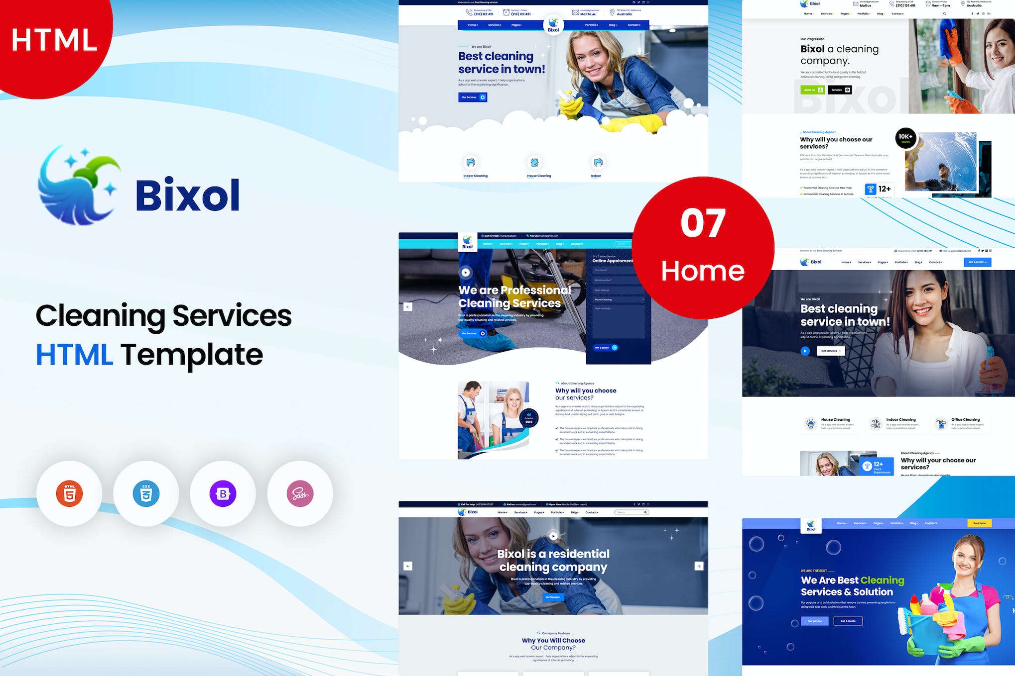 Introducing Bixol Cleaning Services HTML Template, a sleek and modern solution designed to showcase and promote your cleaning services business effectively. This fully responsive template offers 7 Home versions, 15+ Inner pages, and features like Bootstrap 5.x Framework, Revolution Slider, and a Working PHP contact form. With its SEO-optimized code, CSS3 animations, and easy customization, Bixol is the ideal choice for creating a professional website that resonates with your target audience. Get all the necessary HTML files, supporting CSS and JS files, as well as comprehensive documentation for seamless installation and customization. Elevate your online presence with Bixol today!
