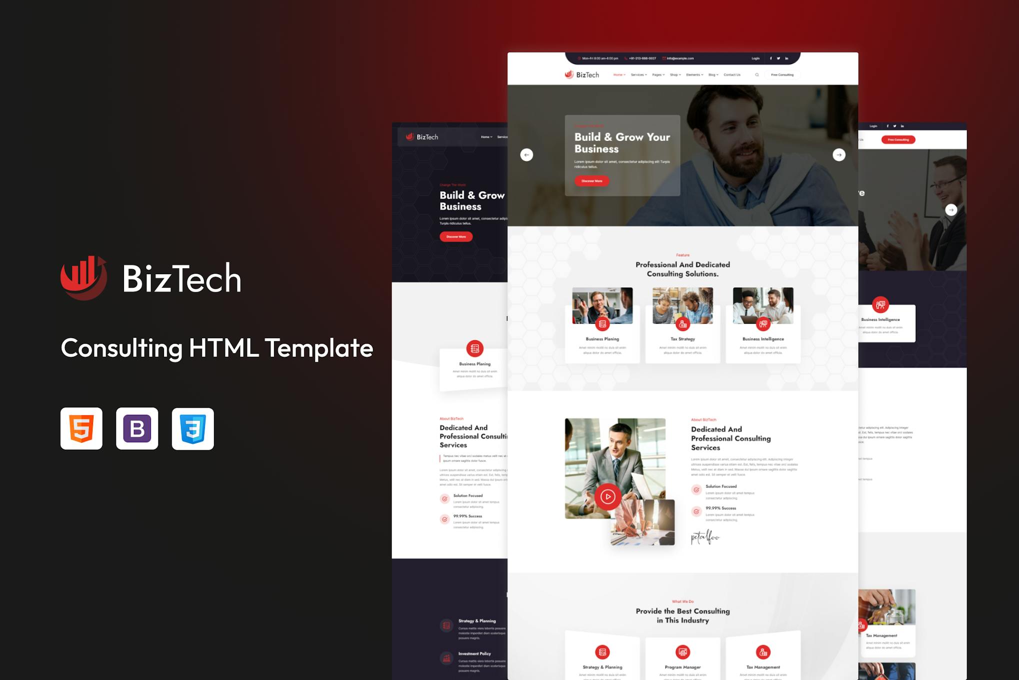 The BizTech Consulting HTML Template is a professional and modern design perfect for showcasing consulting or technology related businesses. With a clean and minimalistic layout, it offers a user-friendly experience for visitors. The template includes various features such as service sections, team profiles, portfolio showcase, and a blog section. Its responsive design ensures compatibility across different devices, enhancing accessibility. Overall, the BizTech Consulting HTML Template provides a sleek and functional platform for businesses to establish their online presence effectively.