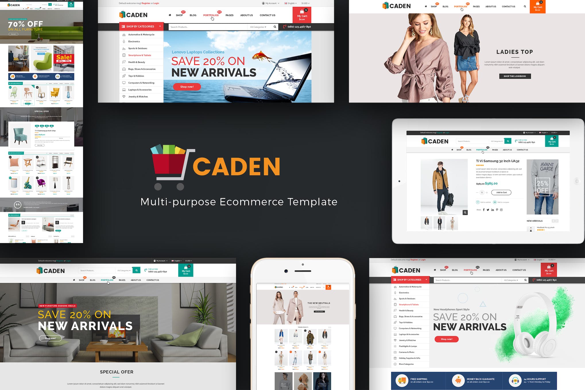 Introducing Caden Mega Store WooCommerce WordPress theme! Perfect for your online store, Caden combines furniture, digital, and fashion themes seamlessly. Create stunning layouts with big blocks and CMS blocks, along with WordPress plugins. Stand out with Daily Deals featuring countdown timers and product descriptions. Set special prices and promotion periods easily. Showcase different product types with Tabs Product Slider and Categories Slider. Engage customers with a convenient Quickview popup for quick purchases. Impress with a Vertical Megamenu and Static Blocks for shipping info and ads. With Visual Composer, customize headers, footers, and more effortlessly. Get ready to elevate your online store experience with Caden!