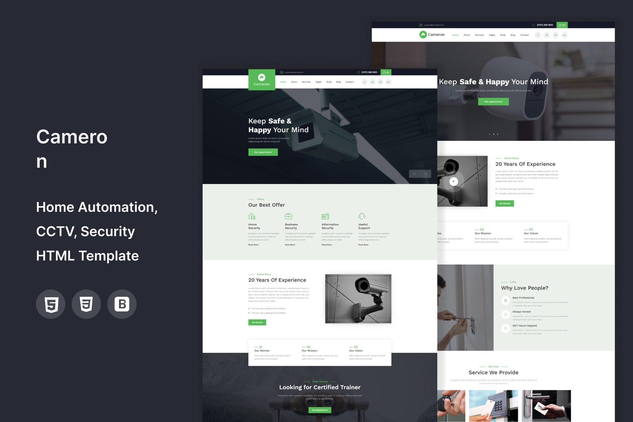 Cameron is a comprehensive HTML template crafted for home security service businesses. Its sleek design is perfect for various properties, including houses, villas, apartments, resorts, and commercial complexes. With a responsive layout that adapts to all devices, this template ensures a seamless online presence. Cameron boasts essential features like project showcases, blogs, testimonials, and team pages. The template’s modern and clean design, along with retina optimization, guarantees a visually appealing website. Built on Bootstrap, Cameron offers advanced typography options and is easy to customize with clean, commented code. Elevate your company’s online presence with Cameron!