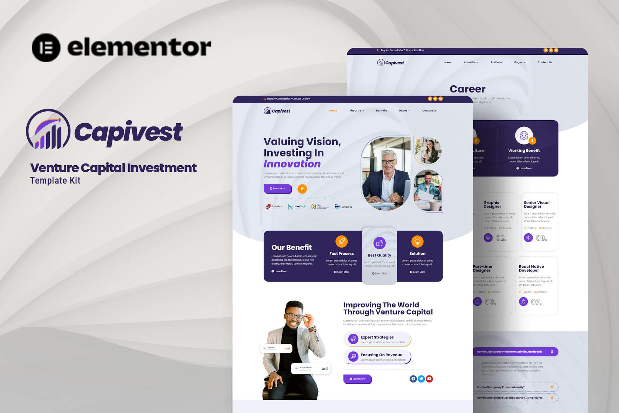 Capivest is a meticulously designed Elementor template kit tailored for venture capital firms, angel investors, startups, and related businesses. With a range of professionally crafted pages like Home, About Us, Team, Portfolio, and more, Capivest offers true no-code customization through a user-friendly drag and drop visual builder. This kit allows you to effortlessly customize fonts, colors, and design elements in one place or individually, making it ideal for creating a modern and fast-loading website. Compatible with most Elementor themes, Capivest ensures a seamless and efficient website development experience, enabling you to showcase your business with style and sophistication. Elevate your online presence with Capivest and impress your audience with a polished and effective website.