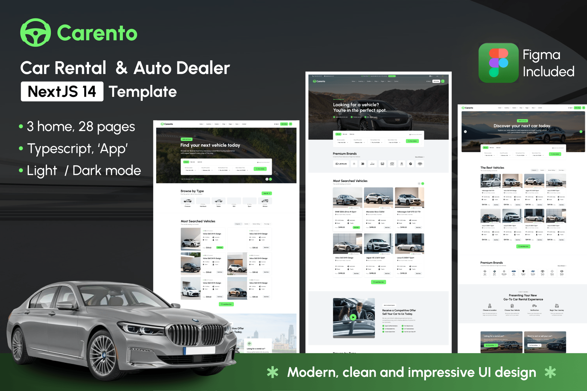Carento is a versatile Nextjs React Template tailored for car rental and auto dealership businesses. It presents a blend of professionalism and modernism, providing a seamless solution for showcasing car listings, managing bookings, and promoting services effectively. With a responsive design and essential pages included, Carento ensures a user-friendly experience. The template comes with a Figma design file for easy customization and is built with the latest Nextjs 14, Typescript, and Bootstrap 5.3.x. Featuring various layouts, detailed documentation, and lifetime updates with user support, Carento offers a comprehensive package for creating a stunning website.