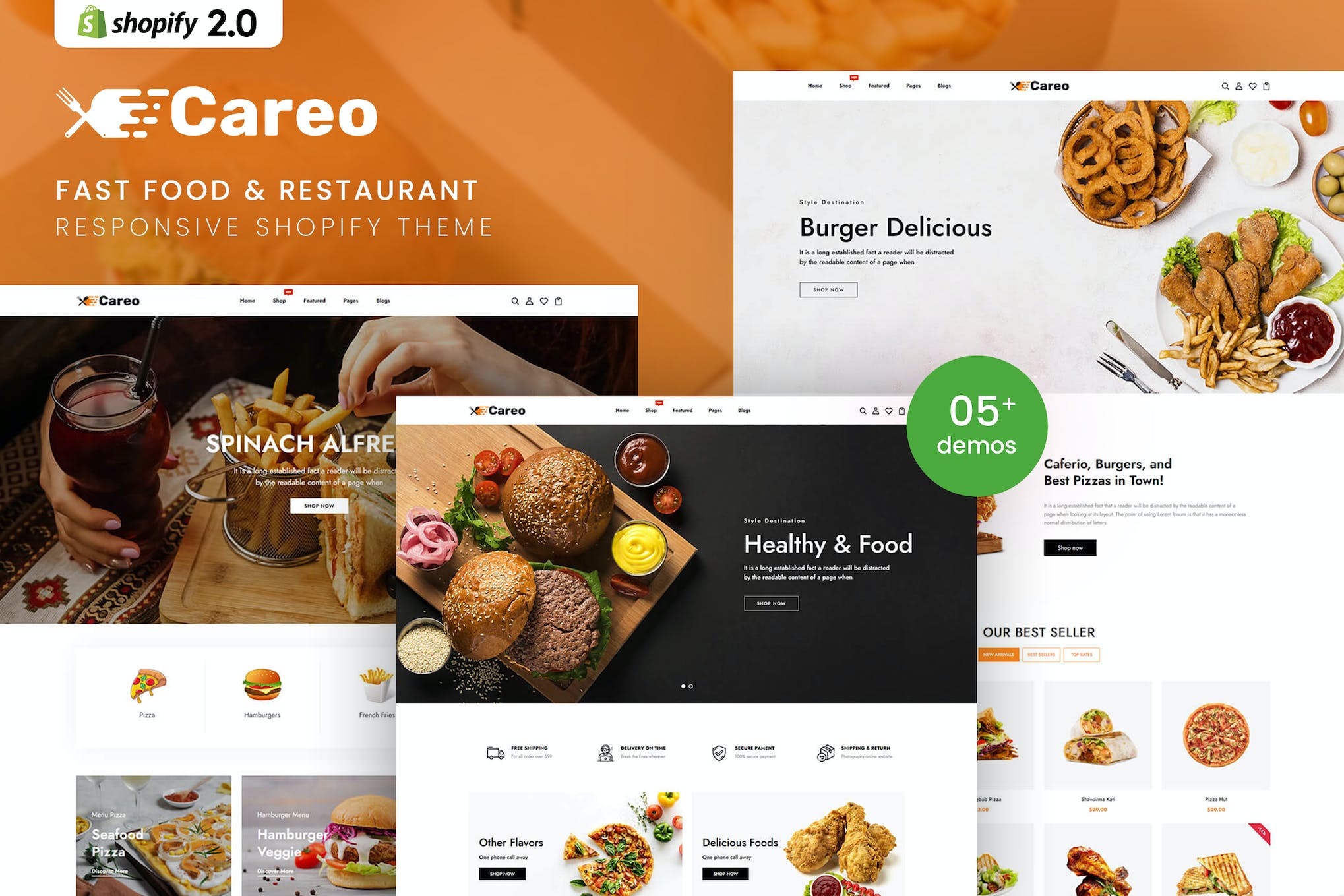 Introducing Careo, a professional Shopify theme designed specifically for fast food companies and individuals. Showcase your mouth-watering menu items such as burgers, fries, pizzas, and hot dogs in an easy and visually appealing way. With 5+ homepage demos and beautifully designed inner pages, this theme is perfect for pizza parlors, cafes, seafood restaurants, and more. Its responsive design ensures a seamless browsing experience on all devices, while its clean code guarantees smooth performance. Take advantage of its powerful features like Megamenu, Quick View Product, and Unlimited Color Options to create a captivating online presence for your brand. Upgrade your website with Careo and offer your customers a delightful and user-friendly experience.