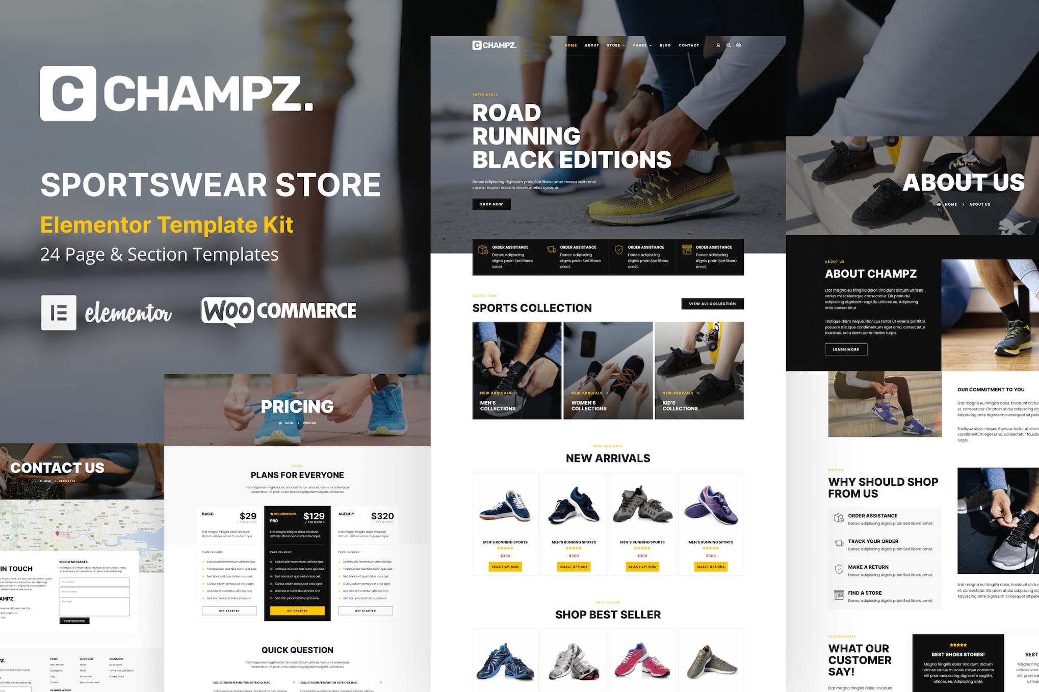 Introducing Champz, the ultimate Elementor Pro website template kit designed specifically for sportswear, footwear, apparel, and sports equipment businesses. Create a professional online store with ease using 24 highly professional page and section templates. This kit is optimized for use with the free Hello Elementor theme and can be used with most Elementor-supported themes. Please note that the Elementor Pro upgrade is required for some templates and features. Crafted with precision, Champz offers beautifully designed pages and sections to elevate your online store.