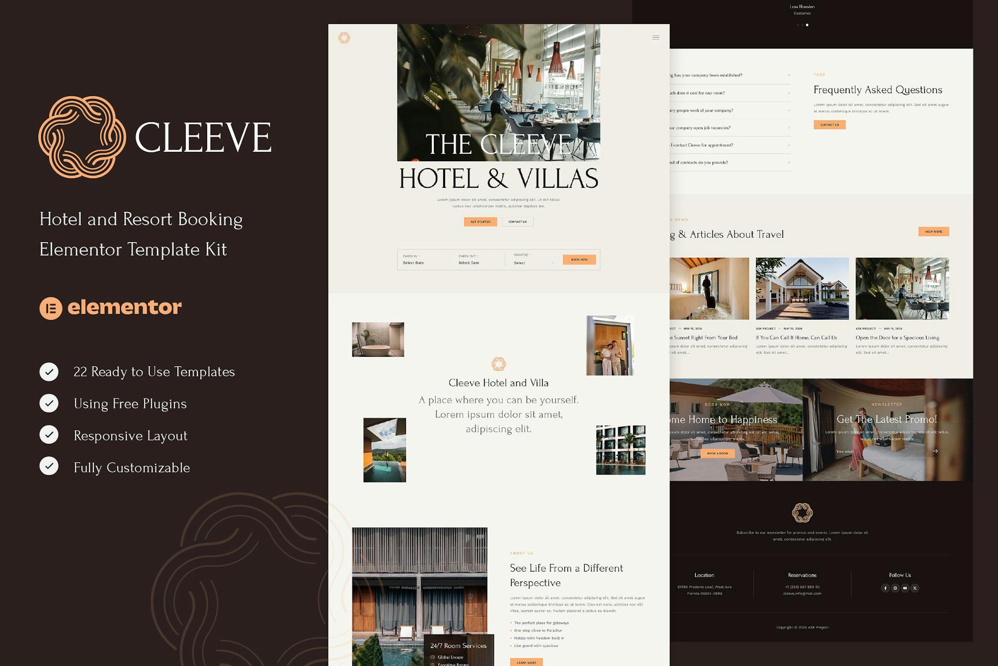 Cleeve – Hotel and Resort Booking Elementor Template Kit is a dynamic solution designed specifically for various accommodation websites, such as hotels, villas, and guesthouses. Featuring a sleek and modern design, this template kit offers a responsive layout that is easy to customize without the need for coding knowledge. With a collection of 15 Pages and 22 Templates, creating a professional-looking website is just a click away. The kit includes essential pages like Home, About, Rooms, Amenities, and more, ensuring a comprehensive web development experience. Compatible with popular browsers, this kit is fully responsive and customizable, making it a versatile choice for anyone looking to establish an online booking platform for hospitality services.