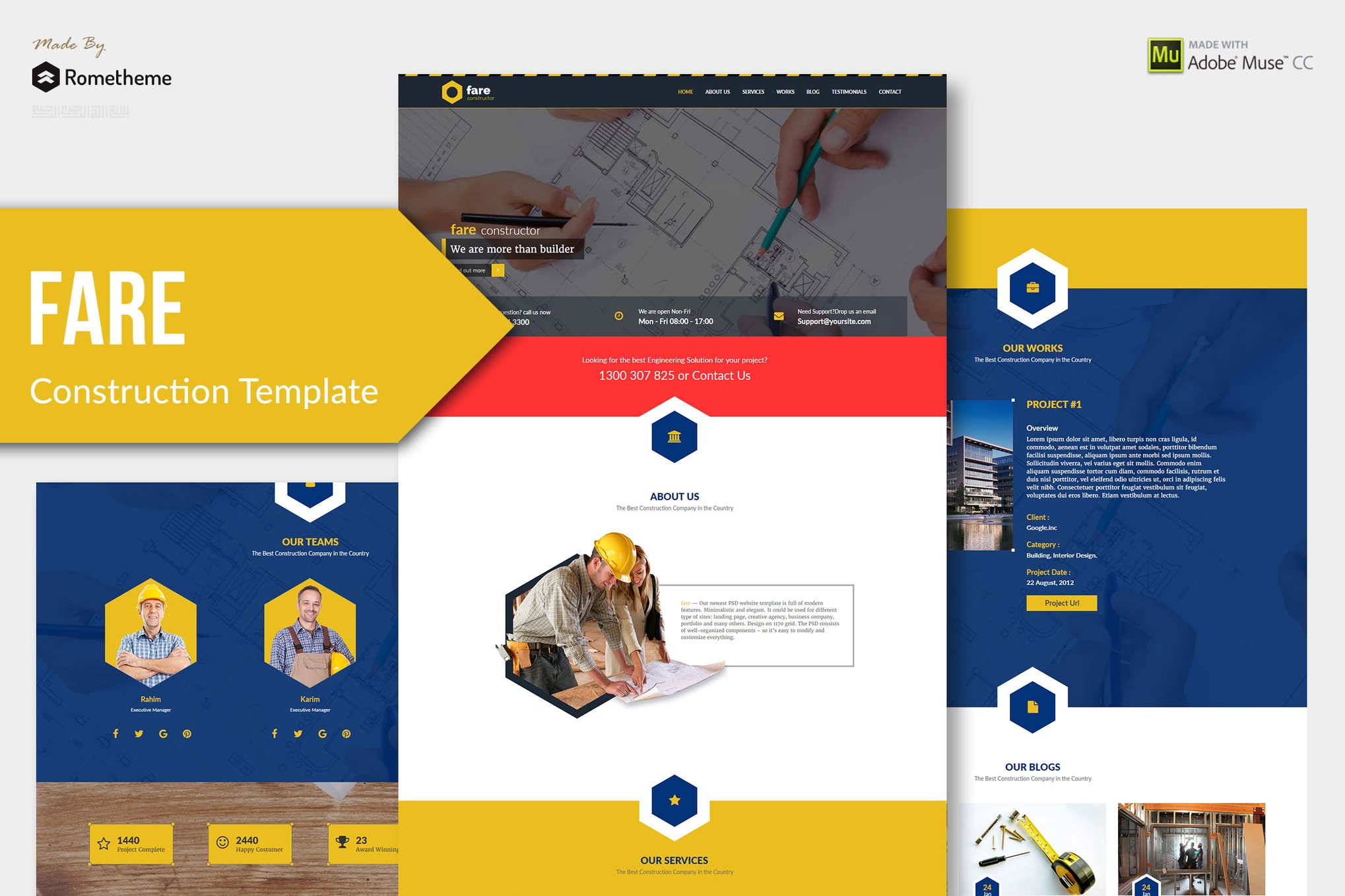 Download Fare, the ultimate solution for construction, engineering, manufacturing, and business needs. This versatile Muse template is a game-changer with its responsive design and multiple page options. It includes over 400 Font Awesome Icons and 100+ Typekit Webfonts, allowing for endless customization possibilities. With a sleek and clean design, Fare is both visually appealing and user-friendly. The package comes complete with PSD files, making it easy to create a professional website in no time. Experience seamless editing with one-click image refill and detailed documentation. Elevate your online presence with Fare today!