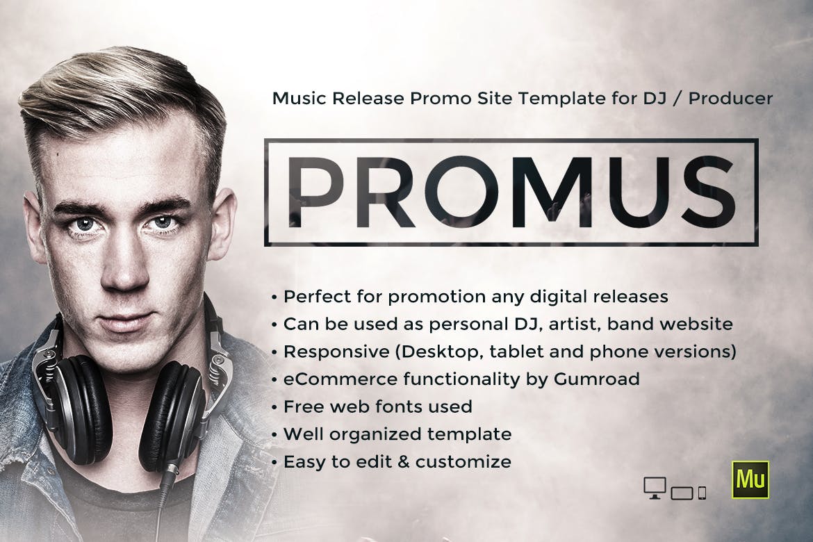 Promus is a versatile one-page website template designed for musicians to promote and sell their music digital releases effortlessly. The template comes equipped with various sections including About release, listen review, video clip, reviews, preorder, about artist, photos, tour dates, booking, contacts, and follow links. With Promus, you can create a polished promotional page for your music releases without the need for coding skills.