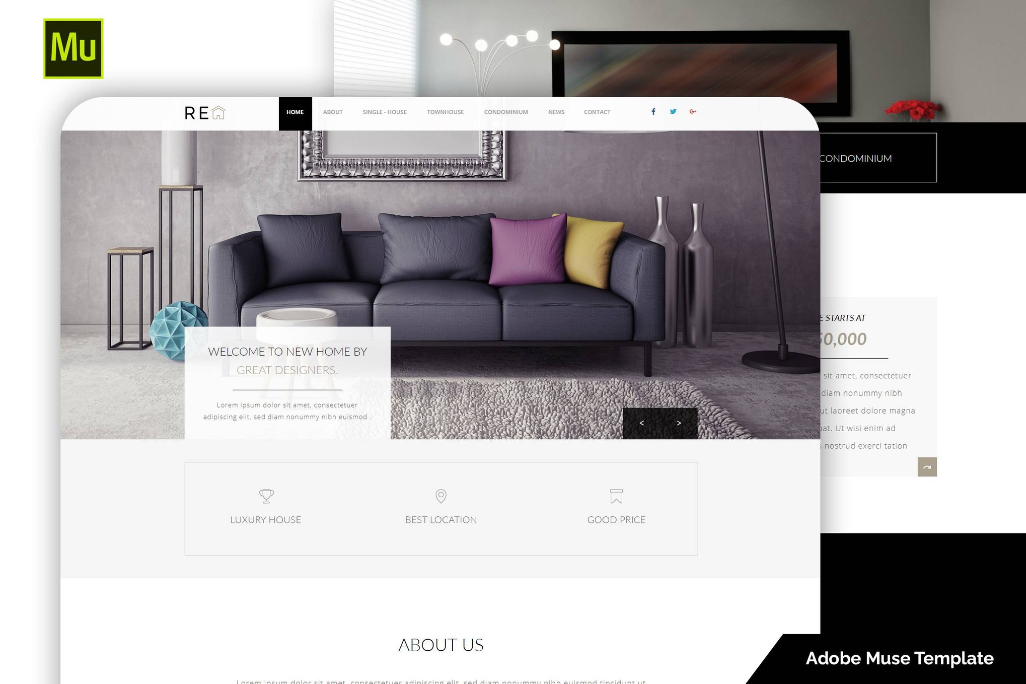 Download the Real Estate Muse Template, a versatile theme perfect for showcasing properties like single houses, townhouses, and condominiums. With a clean layout designed for Adobe Muse CC, this template offers desktop, tablet, and mobile versions for seamless viewing on any device. Easily relink images using the asset bar, and access web and icon fonts for a customized look. Remember, this is not a WordPress theme. For a preview and hosting upload, utilize the included HTML files. Explore the endless possibilities of this template, ideal for real estate professionals looking to make a statement online.