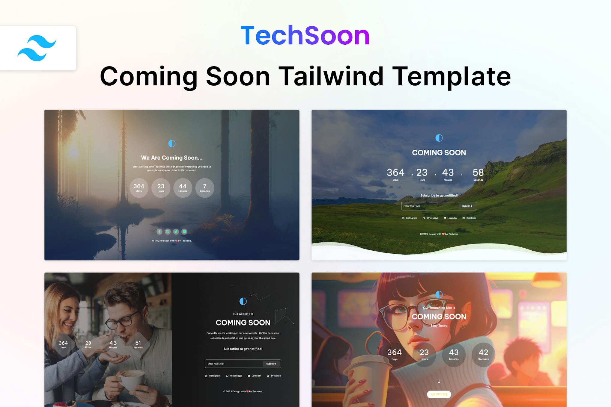 Introducing Techsoon – a sophisticated Coming Soon Tailwind CSS 3 HTML Template designed for Countdown Web Pages, Launching Websites, and Startup Firms. Built on the latest Tailwind CSS v3 framework, Techsoon offers 6 distinct design layouts, clean code, responsive design, and captivating CSS animations. With features like JavaScript Countdown, Gradient background colors, and seamless browser compatibility, Techsoon ensures a seamless and engaging experience for your audience. Easily customizable and well-documented, this template is suitable for various purposes such as Coming Soon pages, Single pages, and Landing pages, making it a versatile and modern choice for your online presence.