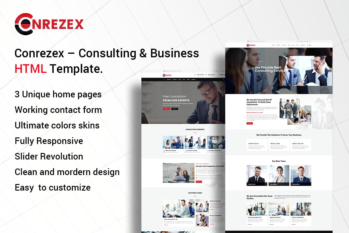 Conrezex is a modern and clean Consulting & Business HTML Template that is versatile and customizable for various business needs. With a variety of features and templates available, it is a powerful tool for creating a professional and engaging website.
