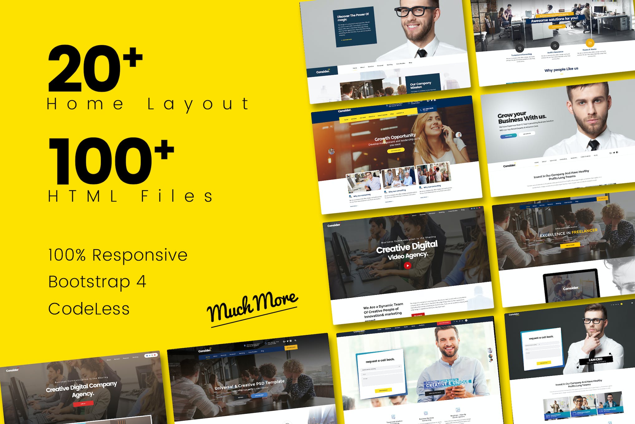 Consider – Multi-Purpose Responsive HTML5 Template is a versatile and user-friendly website template that caters to various industries. With its responsive design, it ensures great browsing experience across all devices. Packed with a wide range of features and customizable options, Consider provides the perfect framework for creating professional and visually appealing websites.