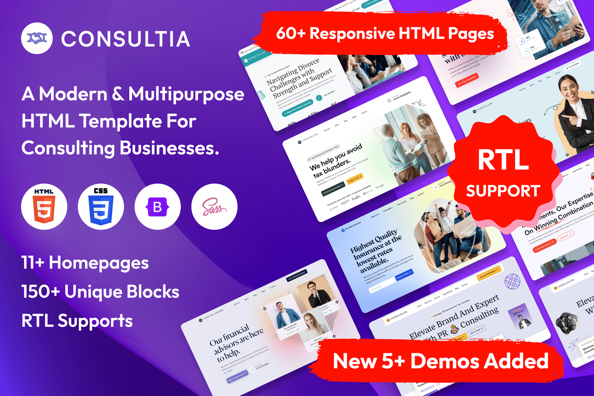 Introducing Consultia – a modern and multipurpose HTML5 template designed for consulting businesses. This template is ideal for various industries such as business, financial, insurance, and more, allowing companies to showcase their services, projects, and information effectively. With 10 high-quality pre-built home pages, including multi-page and one-page options, as well as RTL support, and over 45 inner pages like service, project, team, and testimonial pages, Consultia offers a comprehensive solution for creating a professional online presence. Its responsive design ensures compatibility with all devices, while features like clean code, easy customization, and excellent support make it a top choice for businesses looking to establish a strong online presence.