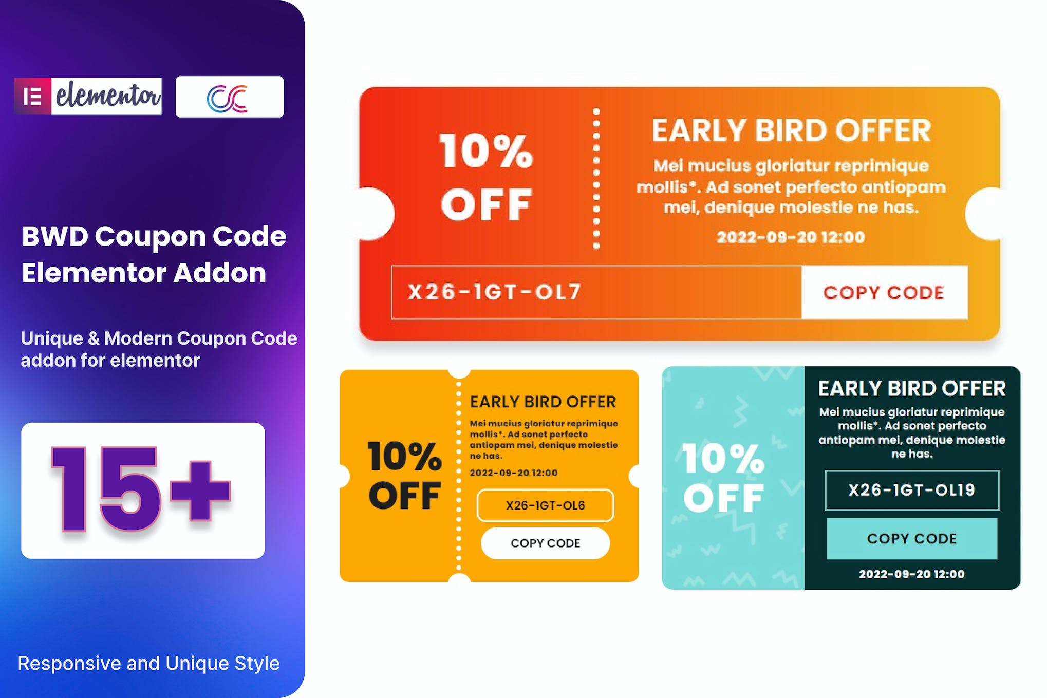 Introducing BWD Coupon Code, a lightweight and user-friendly Elementor base WordPress plugin that allows you to effortlessly enhance your website with an attractive Coupon Code section. With 16 unique preset designs to choose from, customization is a breeze. Whether it’s the expiration date option or the ability to personalize the title, description, code, and color, this plugin offers a seamless experience without the need for coding knowledge. Stay ahead of the curve as more than 100 preset designs will be added soon. Experience the convenience of creating a stunning Coupon Code section in just minutes with this responsive, SEO-friendly, and cross-browser compatible plugin that is perfect for Elementor 2.5 and higher. Don’t miss out on this opportunity to elevate your website. Get BWD Coupon Code today.