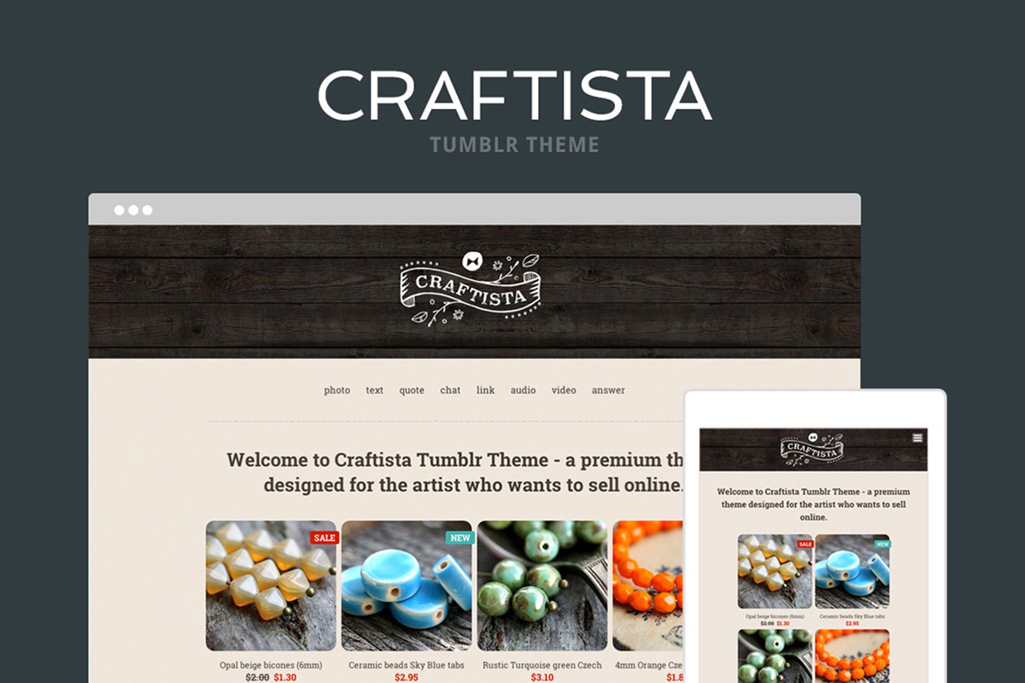 Download Craftista – the ultimate Tumblr theme designed for craftspeople and creative minds. With a responsive layout and support for all post types, Craftista doubles as a stunning portfolio theme. Its features include a customizable homepage, product-specific templates, PayPal integration, Google WebFonts, localization, and social sharing options. Craftista also offers fantastic support to ensure a smooth setup. Need help or have a quick question? Visit our website to file a support ticket or reach out to us on Twitter. Explore the complete feature listing and recent updates at http://themelantic.com/craftista. Let Craftista elevate your online presence today!