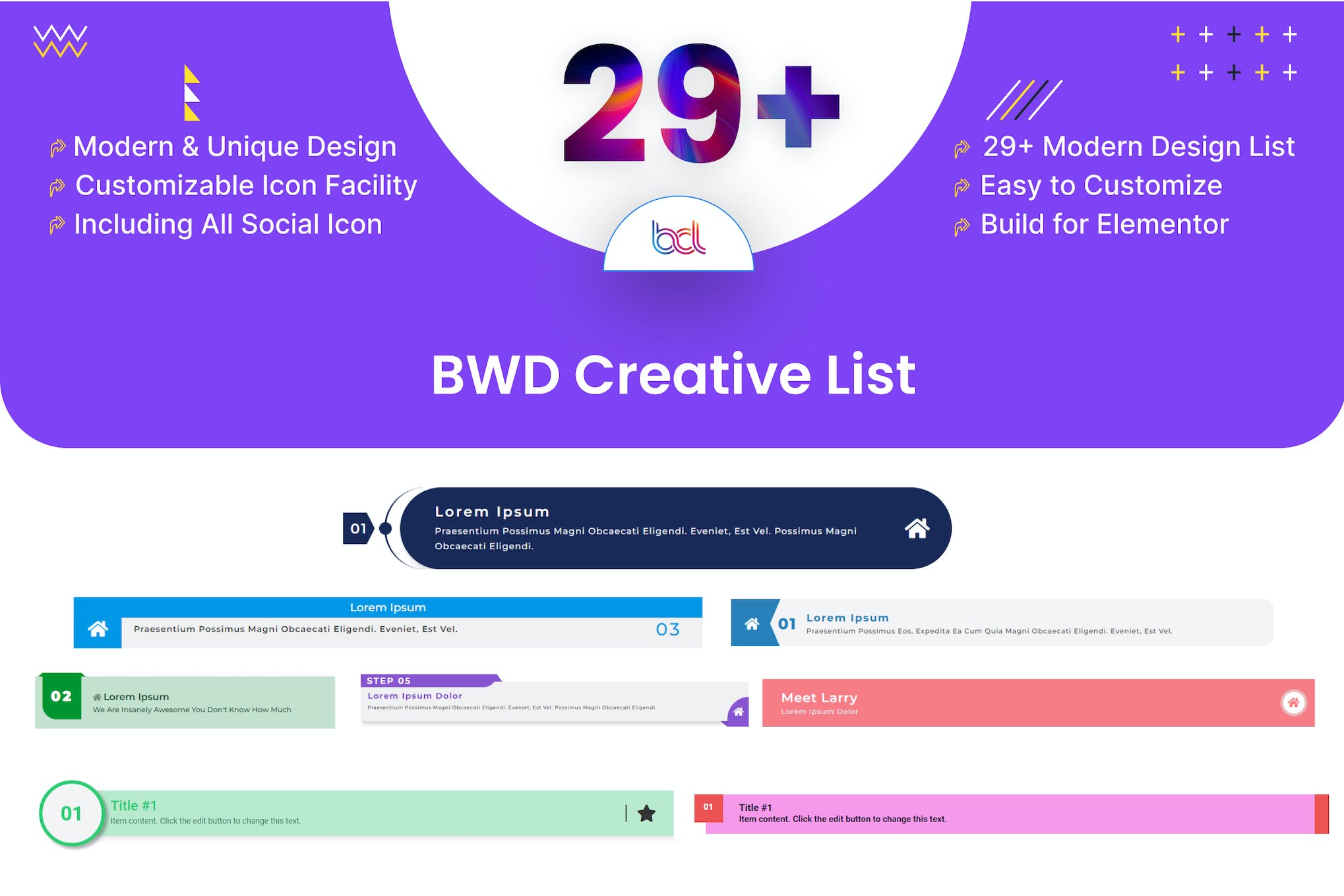 Introducing BWD Creative List, the unparalleled list plugin designed exclusively for Elementor. With 29+ unique preset designs, it offers an array of stunning options. Create beautiful lists effortlessly with its user-friendly interface, no coding required. This plugin is responsive, SEO-friendly, and compatible with Elementor 2.5 and higher. Its clean and optimized code ensures compatibility with all WordPress themes built on Elementor, making it the perfect choice for a wide range of websites. Experience seamless performance with cross-browser compatibility and W3C validated coding. Complete with extensive documentation and a pot file for quick translations, BWD Creative List is the ultimate solution for your Elementor needs.