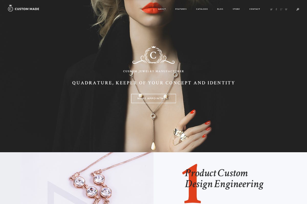 Introducing Custom Made, a sophisticated and captivating Jewelry and Luxury Watches WordPress Theme specially designed for custom jewelry manufacturers, designers, online jewelry stores, watch shops, and more. With its premium design and elegant aesthetic, this theme is perfect for showcasing your jewelry creations or luxury timepieces. It also caters to jewelry repair shops, custom jewelry services, and any eCommerce site. Custom Made comes with three homepage layouts and integrates popular plugins like WPBakery Page Builder, WPML for translation, Essential Grid, MailChimp, Instagram Feed, Slider Revolution, and WooCommerce. Packed with custom shortcodes and widgets, it offers endless possibilities for showcasing your exquisite jewelry collections and decorations, including rings, earrings, chains, and precious stones.