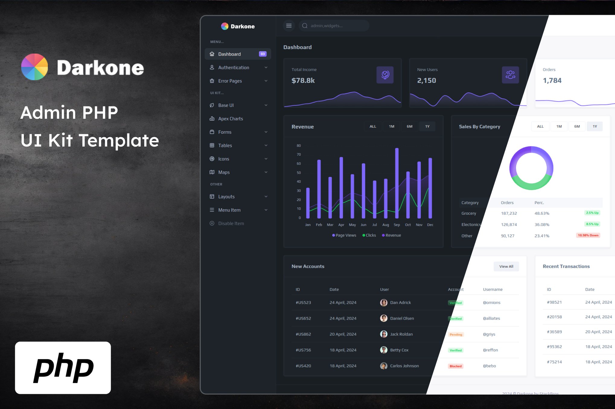 Darkone is a sophisticated Admin and Webapp UI Kit that is perfect for modern development needs. Developed using Bootstrap v5.3.3 and PHP, Darkone offers a versatile range of reusable elements, components, layouts, forms, widgets, and feature-rich dashboards. With a modern Dark mode admin design, it allows for effortless customization through SCSS Variables. The kit is fully responsive across devices and browsers, making it highly adaptive. You can streamline your development process with the integrated Gulp Workflow. Darkone includes an extensive library of 50+ pages, 300+ UI components, comprehensive charts, and 3000+ premium font icons. It also provides customizable light & dark sidebars and top bars. From dashboard layouts to error pages, Darkone covers all essential elements required for your web development projects.