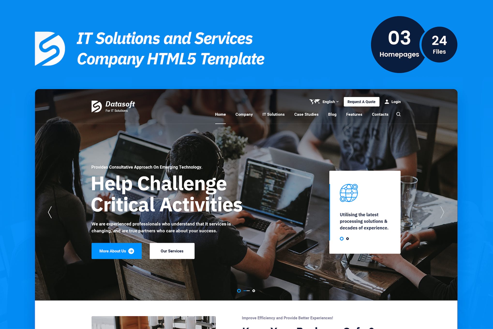 The Datasoft IT Solutions & Services HTML5 Template is a modern and professional-looking website template designed for IT companies and service providers. With its clean and sleek design, this template offers a wide range of features and functionalities to showcase your services and highlight your expertise. Whether you need to create a website from scratch or revamp your existing one, Datasoft is a perfect choice to create a strong online presence for your IT business.