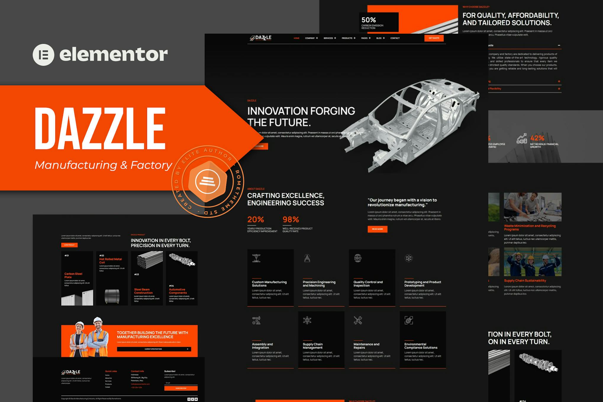 Introducing Dazzle, an advanced Elementor Pro Template Kit tailored specifically for Manufacturing & Factory websites. Ideal for businesses within the industrial sector, such as agriculture, construction, fisheries, forestry, and manufacturing, this kit offers a modern design that is fully responsive and easy to customize without any coding knowledge. With 12+ pre-built templates including Homepage, About Us, Services, and more, you can easily create professional and sleek pages for your website. The kit is compatible with popular browsers and does not require Elementor Pro for most features, making it accessible to all users. Elevate your website development process with Dazzle Template Kit today!