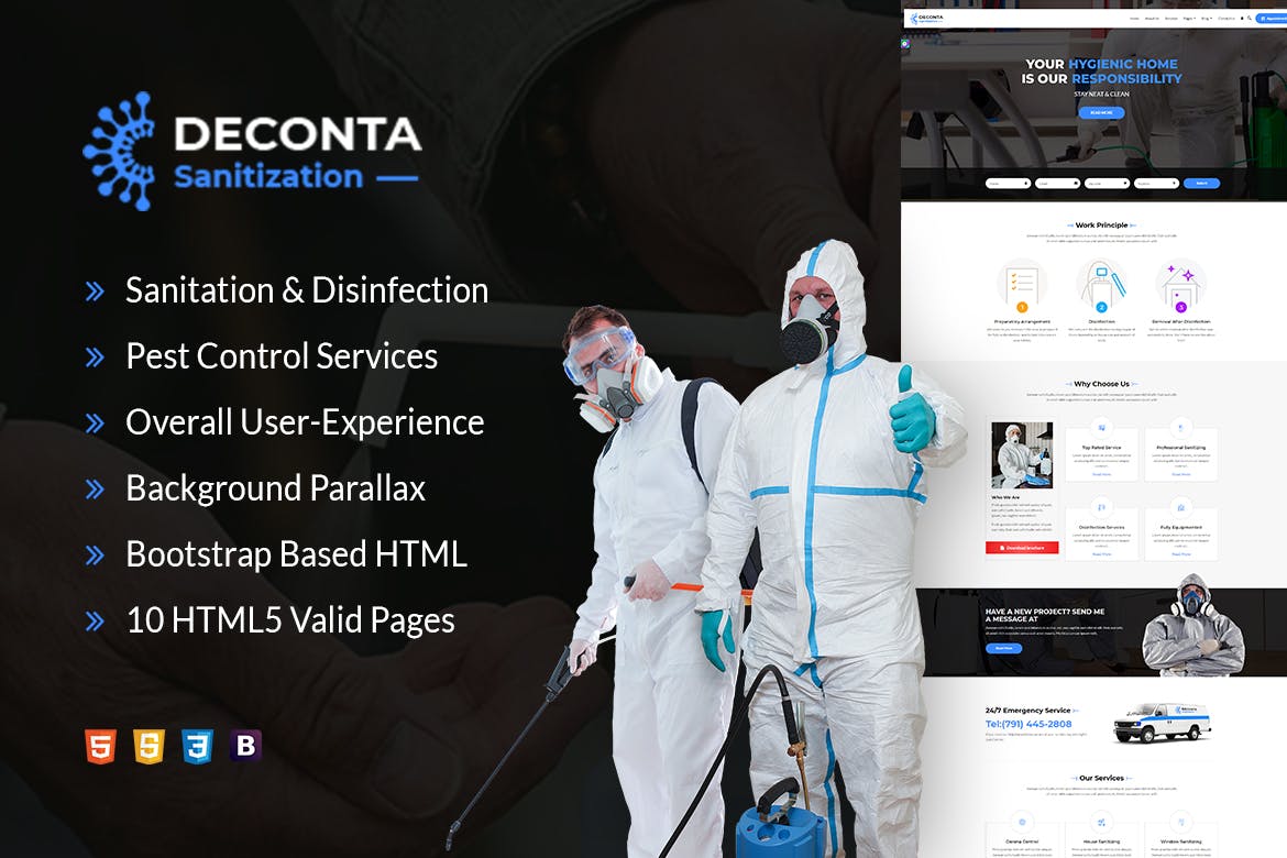 Introducing the innovative “Deconta Sanitation and Disinfection HTML Template” designed for businesses in need of sanitization, pest control, and cleaning services. This professional template is ideal for sanitization companies, cleaning businesses, and office sanitize services. With 10 ready-to-use HTML pages, it offers a comprehensive solution for launching a website dedicated to sanitation and pest control services. Crafted with responsive design and featuring essential elements such as Intro section, Parallax Section, and easy customization options, “Deconta” is your go-to template for creating awareness and promoting medical prevention initiatives, especially in tackling Coronavirus (COVID-19) challenges.