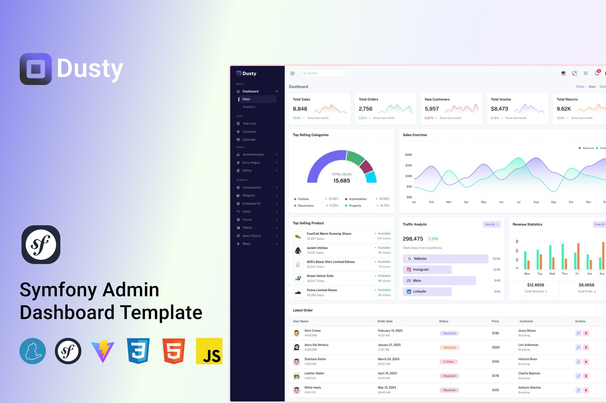 Introducing Dusty Symfony, a cutting-edge admin and dashboard template meticulously crafted with Symfony 7 and Bootstrap 5.3.3. Seamlessly blending functionality with a unique design, this template offers responsive layouts, cross-browser compatibility, and easy customization. Developers can effortlessly switch between two distinct dashboards, each packed with modern widgets and optimized for top performance. With a fully responsive layout and a wide range of features like rich forms, widgets, and error pages, Dusty Symfony is the ultimate choice for building dynamic web applications.
