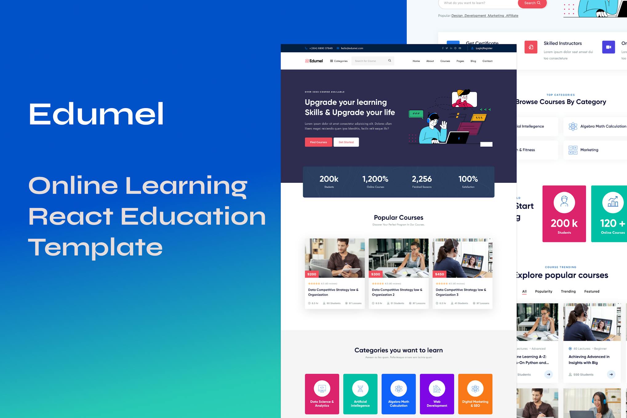 Introducing Edumel, a sleek and contemporary React Education Template perfect for universities, online courses, schools, and more. With 2 homepage demos and dynamic course pages, this template is developer-friendly and fully responsive. Benefit from features like Bootstrap 5.x, FontAwesome icons, and Google Fonts, all packaged with lifetime free updates and detailed documentation. Make Edumel your top choice for a seamless website-building experience!