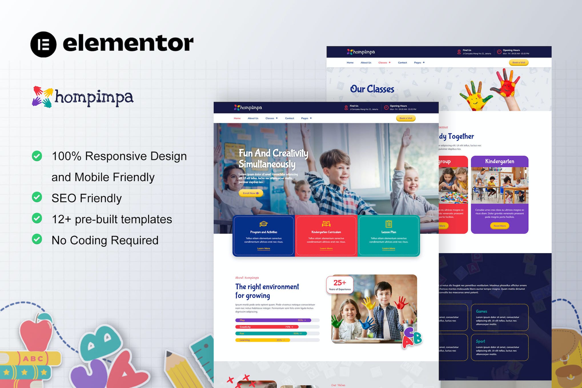 Introducing Hompimpa, the perfect Elementor Template Kit for kindergarten and child care services. With its clean, modern, and colorful layout, this kit is designed to create a professional website for businesses centered around children’s education. Save valuable time with Elementor Page Builder, easily customizing the templates without any coding knowledge. This kit includes various pre-built templates for the homepage, about us, classes, contact, FAQ, gallery, blog, and more. Create an engaging online presence for your child care business with Hompimpa.