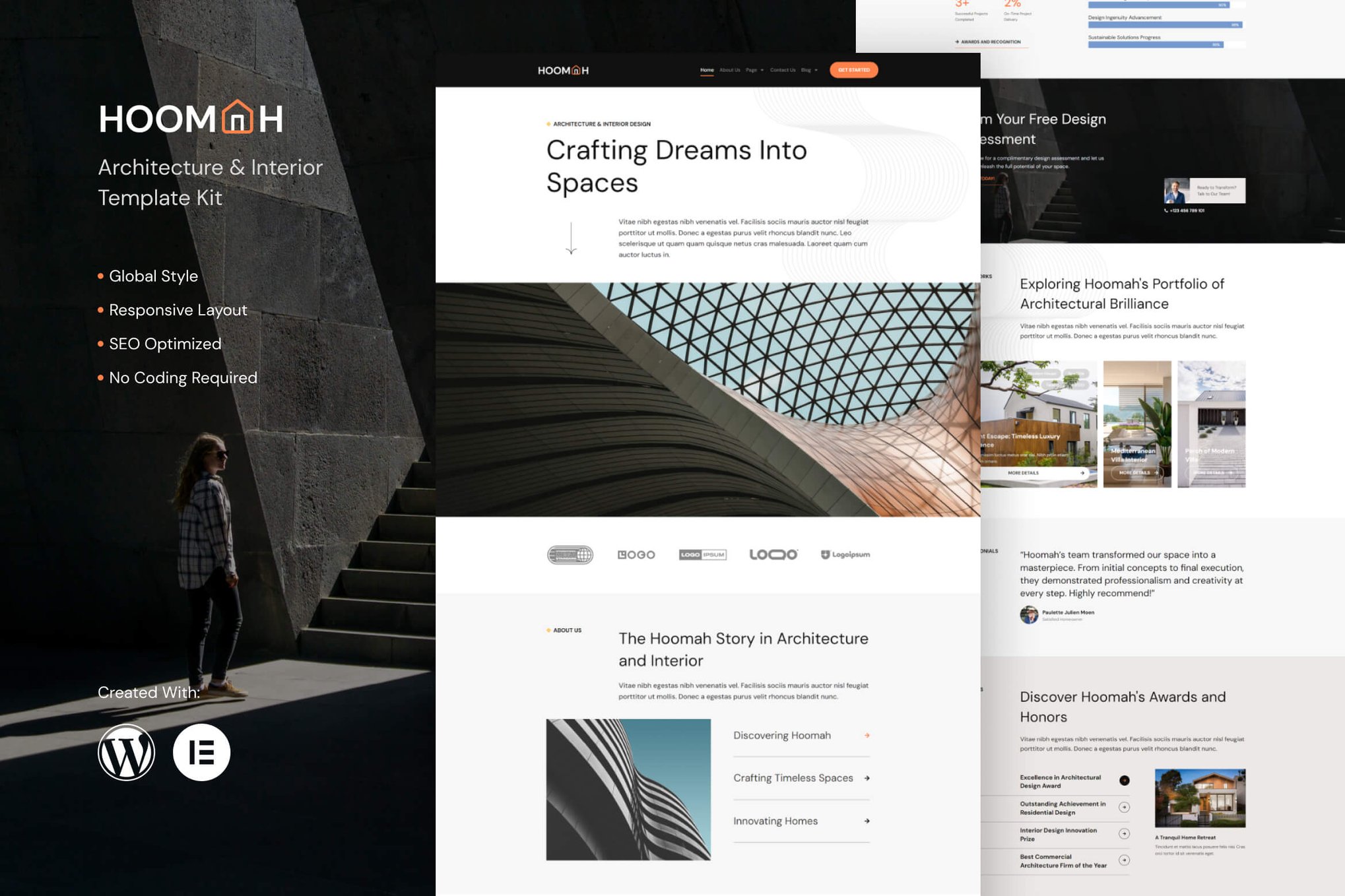 Introducing Hoomah – a comprehensive Template Kit designed for architecture and interior design professionals looking to elevate their online presence. With its modern aesthetic and user-friendly features, Hoomah provides a seamless solution for creating a sophisticated website that beautifully showcases your portfolio and services. Fully responsive and highly customizable, this kit allows you to personalize each element to align with your brand identity, ensuring a stunning and impactful representation of your business. Upgrade your online platform effortlessly with Hoomah and captivate your audience with its sleek design and functional capabilities.