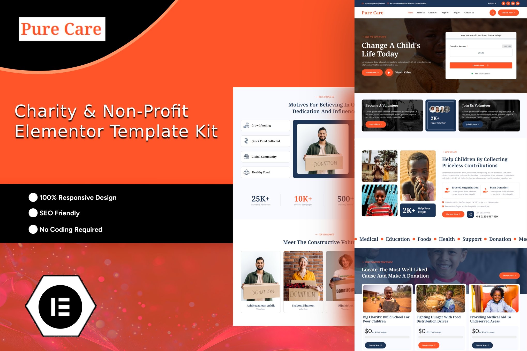 Enhance your charity or nonprofit organization’s online presence with Purecare – a sleek and professional Elementor template kit. Featuring a contemporary design, this kit offers a range of fully compatible page templates and hand-picked images for a premium aesthetic. With a responsive layout and easy-to-use Elementor Page Builder, creating a customized website is effortless without the need for coding. Optimize your time and project with Purecare to make a lasting impact in the digital sphere.